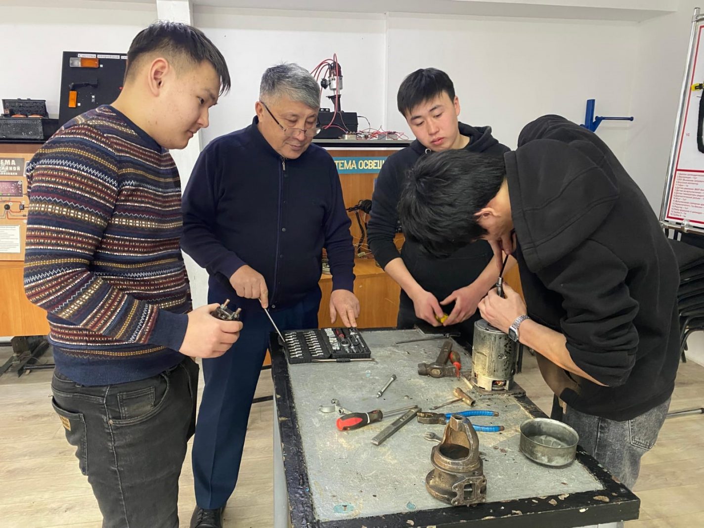 Практикалық бағытты күшейту үшін студенттер нақты көлік құралдарымен жұмыс істейді. Олар стартерді өз қолымен шешіп алып, бөлшектеу, тазалау және қайта жинау жұмыстарын орындайды. Сонымен қатар, ақауларды анықтау үшін кезең-кезеңімен алгоритм құруға үйренеді: алдымен визуалды тексеру, кейін электр өлшеулер жүргізу, соңында механикалық бөліктерді бағалау. Оқытушылар өндірістік жағдайларға жақындатылған тапсырмалар береді, мысалы, уақыт шектеуімен ақауды табу немесе клиенттің шағымына сәйкес диагностика жүргізу. Бұл студенттердің жылдам шешім қабылдау, жауапкершілік және кәсіби ойлау қабілетін дамытады.